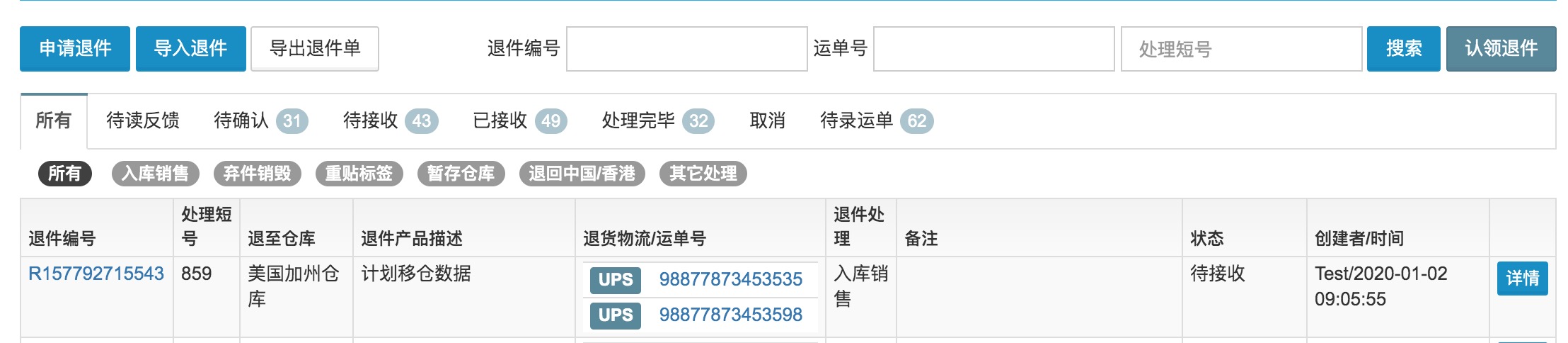 手动录入退件信息