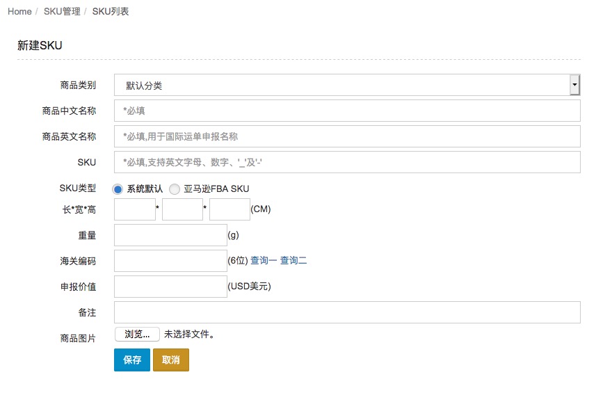 开始所有业务操作前,先建立好商品的SKU信息。这是管理货物的基础,SKU创建可单个建立或批量导入。