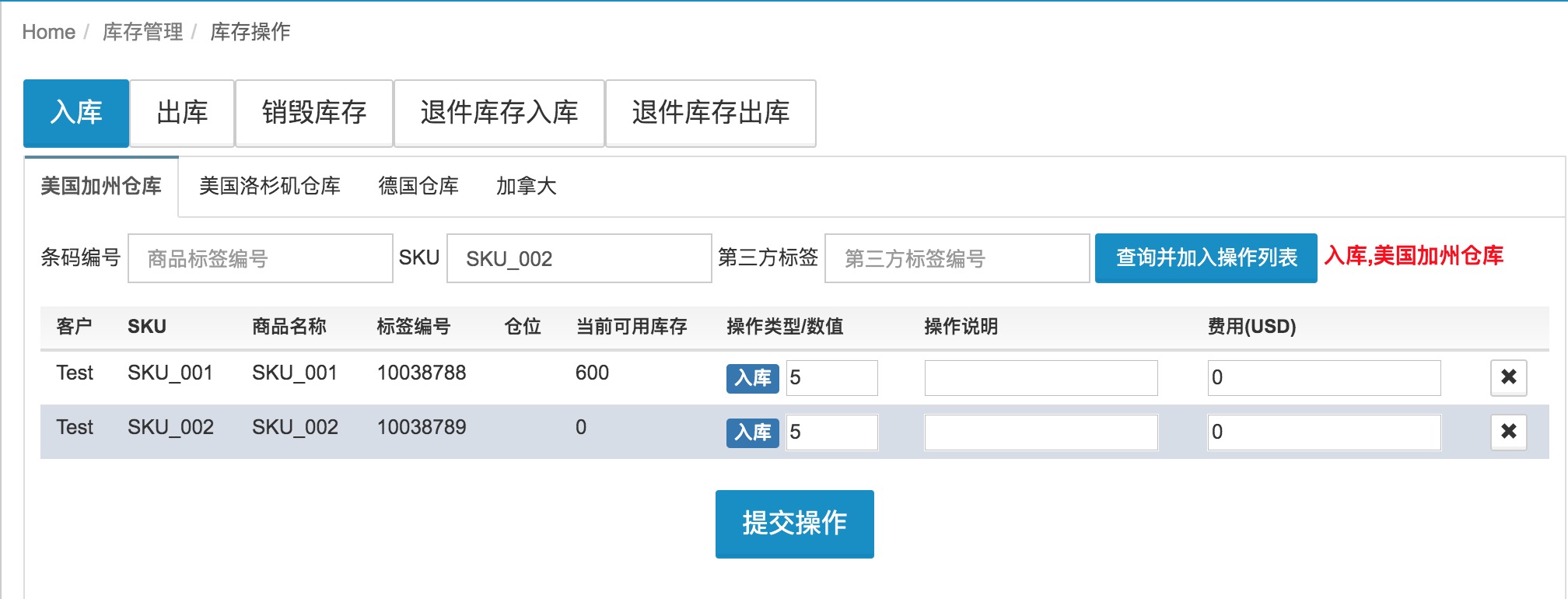 正常出入库均为在相关业务单中关联操作库存,如需要手动入库或出库库存,可通过此功能操作